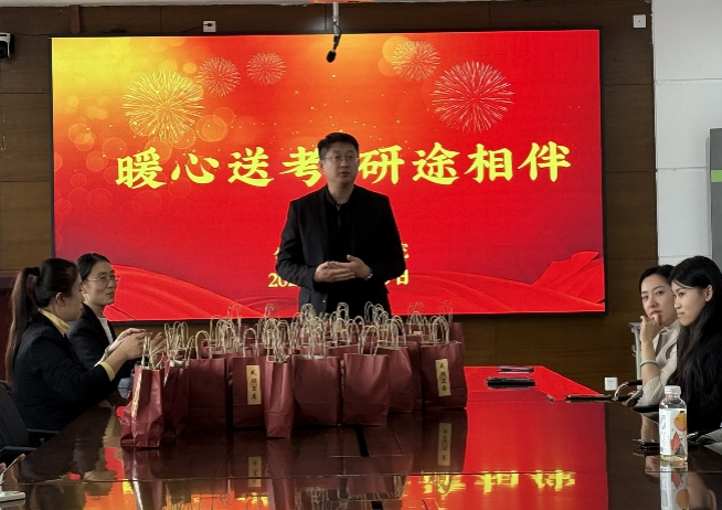 2025年全国硕士研究生招生考试在即,在备考的最后冲刺阶段,为帮助考研学子们舒缓备考压力,增强迎考信心,加强诚信教育,以饱满的精神状态迎接考试,beat365平台官方网站于12月19日下午在学院楼424会议室举办“暖心送考,研途相伴”考研慰问活动暨研究生考试法治及诚信教育大会,为考研学子送上最真挚的祝福与支持,助力他们踏上梦想的征程。beat365平台官方网站班子成员、两位辅导员老师及全体考研学生参加了本次活动。