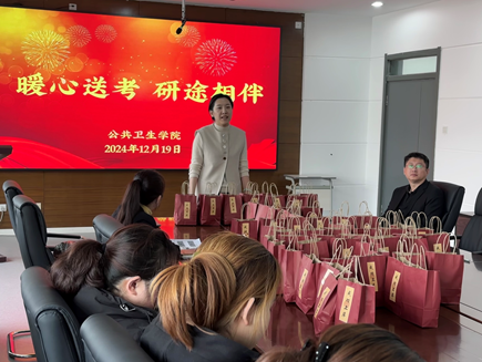 于泳书记强调了坚定信念和诚信考试的重要性。他鼓励大家在备考决胜日这两天合理调节心理状态,以积极乐观的心态投入复习,克服焦虑情绪的干扰,同时提醒同学们,在努力学习的过程中,切不可忽视身体健康,做好保暖防护措施,避免感冒等疾病的乘虚而入,确保以最佳的身心状态迎接考试。陈欣副院长以自身经历向同学们分享了考研不仅是一场知识的较量,更是意志和心态的考验。她提醒同学们要合理安排时间,保持良好的作息,以充沛的精力和稳定的心态迎接考试。