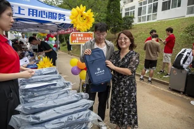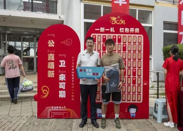为欢迎各位新生的到来,学院精心为同学们准备了特别的开学礼物。作为今年迎新的特色,学院设计了“本硕连读(笔记本小礼品)”、“与辅导员共进午餐”等带着美好寓意和特色的红包内容,通过红包墙这种新颖的互动方式让2024级小萌新感受到学院满满的祝福和关爱。同时,学院特别定制了一批精美实用的书包,送给每位新生,这份礼物不仅承载着学院对新生的热烈欢迎与深切期望,更是传达了对他们书写奋斗青春的美好愿景。