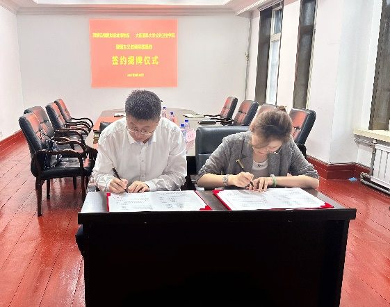 为深入学习贯彻习近平新时代中国特色社会主义思想,加强学生爱国主义教育,深化beat365平台官方网站与旅顺日俄监狱旧址博物馆的合作,9月20日,学院与旅顺日俄监狱旧址博物馆在馆内多功能厅举行“爱国主义教育实践基地”签约挂牌仪式,旅顺日俄监狱旧址博物馆馆长姜超、陈列研究部冯荣、宣教部薛志刚,学院党总支书记于泳,本科、研究生两位辅导员参加了仪式。