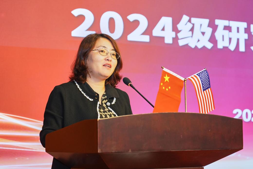 孙鲜策在讲话中表示,中美合作MPH项目是我国首个中外合作的公共卫生硕士项目,致力于培育高素质的公共卫生专业人才。该项目不仅吸纳了国际前沿的教育理念和教学方法,而且紧密契合全球公共卫生发展的潮流,从而推动了公共卫生学科的持续发展。在新生们即将迈入新学期之际,她向他们提出了三点期望:坚持不懈,践行知行并进;尊重多元,保持国际视野;勇于创新,做公卫领军者。愿他们能够在学习过程中突破自我,学有所成。