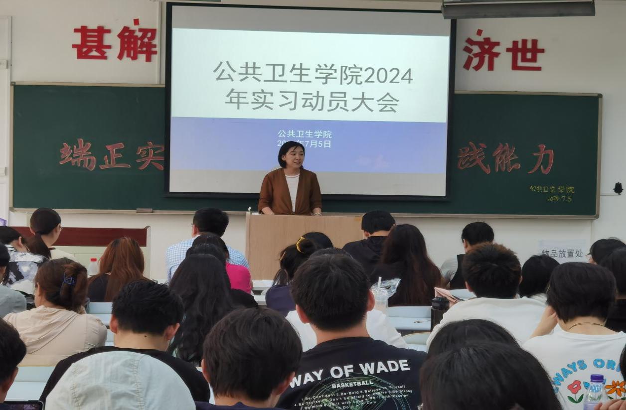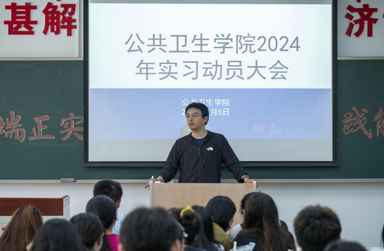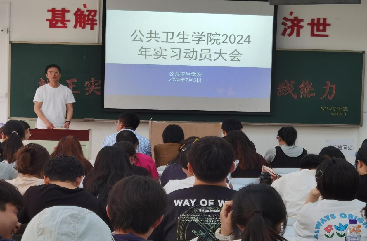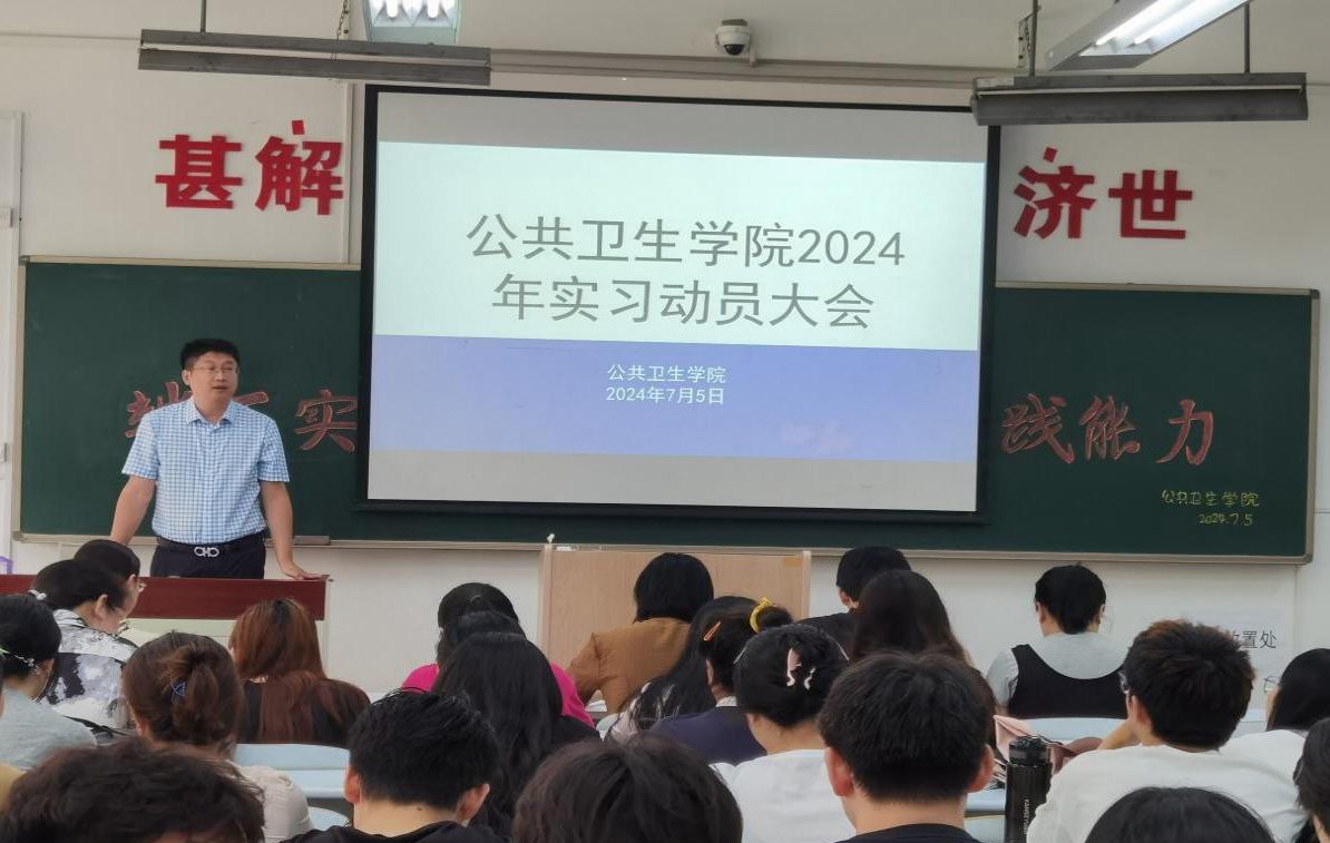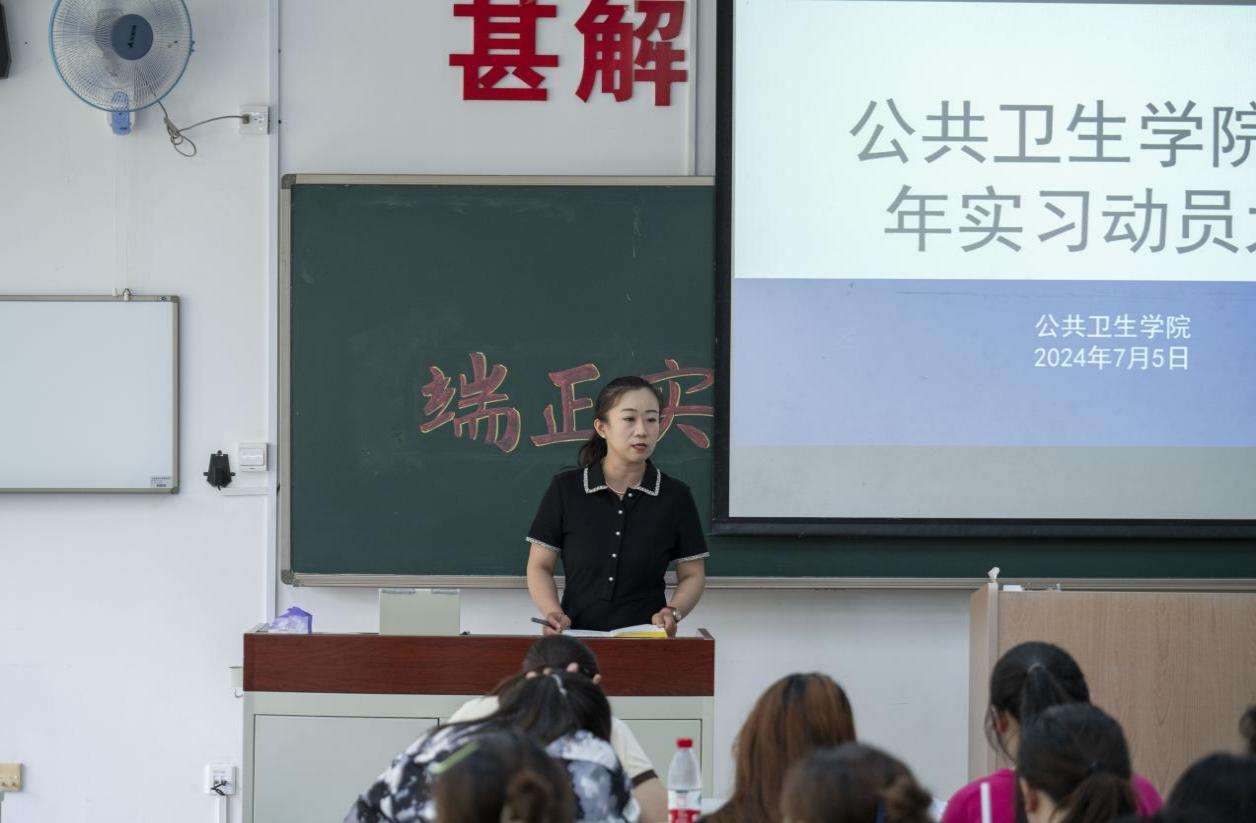 为确保学院学生实习工作的顺利开展,帮助学生尽快熟悉实习安排,以良好精神面貌投入实习,beat365平台官方网站于7月5日在D110教室召开了2024年实习动员大会。学院党总支书记于泳、副院长陈欣、白洁老师、王洪伟老师、李景山老师、两位辅导员老师以及20、21级预防医学专业全体学生参加了此次大会。