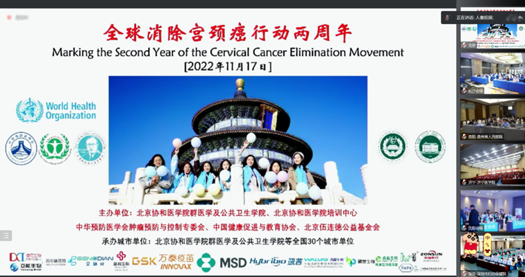 17日上午,北京主会场与全国30个分会场视频连线开展活动,北京主会场由赵方辉教授主持,各位领导与嘉宾致辞。会上,乔友林教授对WHO全球消除子宫颈癌两周年活动进行简明的介绍;郎景和院士讲述了中国宫颈癌的消除之路。各位领导教授的发言高屋建瓴,总揽全局,增强了消除宫颈癌的信心和底气。