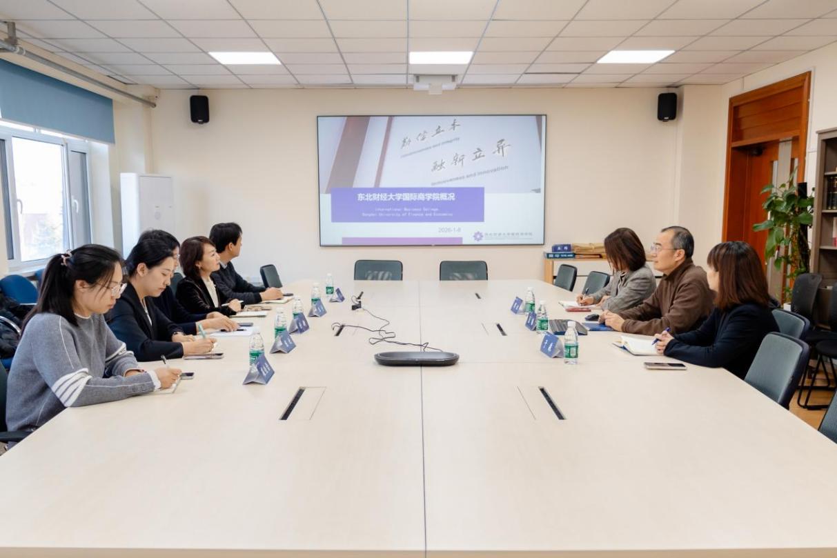 为进一步提升beat365中美合作MPH项目的合作办学质量,学习借鉴优秀院校在中外合作办学方面的先进经验,提升beat365中外合作办学办学水平,1月8日下午,在学校交流合作处的支持下,beat365中美合作MPH项目工作小组赴东北财经大学国际商学院开展学习交流。东北财经大学国际商学院院长孟韬、副院长(教学)于淼、项目部主任图娅,beat365平台官方网站党总支书记兼副院长金新、交流合作处副处长王宁、beat365平台官方网站副院长(主持工作)陈欣、教学办公室副主任李景山、中美合作MPH项目专员崔佳雪参加此次调研交流。