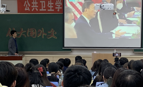 随后,通过对比120年前丧权辱国的“辛丑条约”和外交失败的巴黎和会,再次诠释了弱国无外交的惨痛教训,并从大国成长的“大历史”出发,细说新中国赢得生存的“革命外交”、谋求发展的“发展外交”和走向强大的“复兴外交”三个外交阶段。回首新中国72年的辉煌历程,见证着中国共产党带领全国人民应对外部世界挑战,求生存、求发展、求复兴的筚路蓝缕、砥砺奋进,深入感受中国共产党人的初心如磐、使命如山。最后,以习近平总书记在2021年新年贺词中的“征途漫漫,惟有奋斗”激励同学们坚定不移听党话,跟党走,以先辈为榜样,以英雄为楷模,仰望星空,脚踏实地,不负历史使命,坚持不懈奋斗,继续向着实现中华民族伟大复兴的光辉目标昂扬进发。