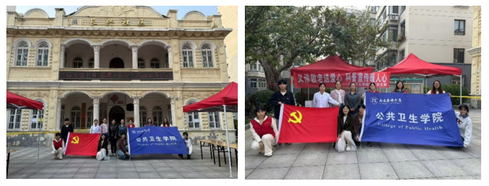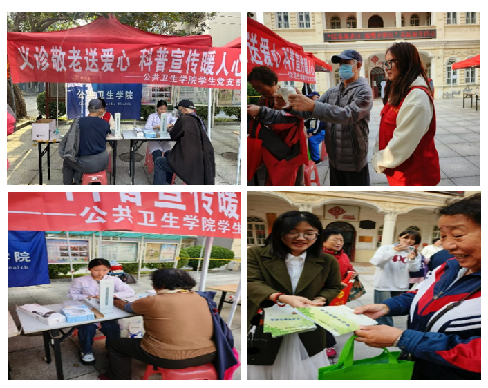 活动现场,学生党员为社区的老人们测量了血压和体脂,并耐心地提醒他们要注意饮食健康和适度运动。同时还分发了中老年膳食指南,向他们普及健康的生活方式。